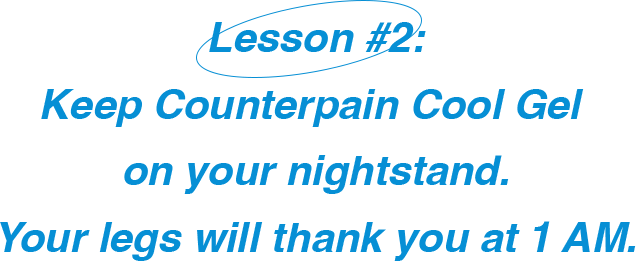 Lying in weird ways can mess with circulation. With all the overusing of muscles during the day or the lack of movement due to prolonged sitting at your desk jobs, your muscles especially your legs may suffer from inadequate blood flow which attacks you all at once in your sleep. Don’t forget to stretch before bed, lie in a comfortable and proper position that doesn’t cramp up your feet and legs, and apply Counterpain Cool Gel before bed if you’ve had an active day with sore muscles.