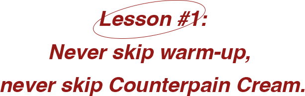 Futsal is fun—until you cramp up. Stretch those hamstrings, thighs, and calves, and always rub in Counterpain Cream pre-match. Counterpain Cream penetrates deep into your skin to provide the heat that warms up the muscles and relieves the pain.