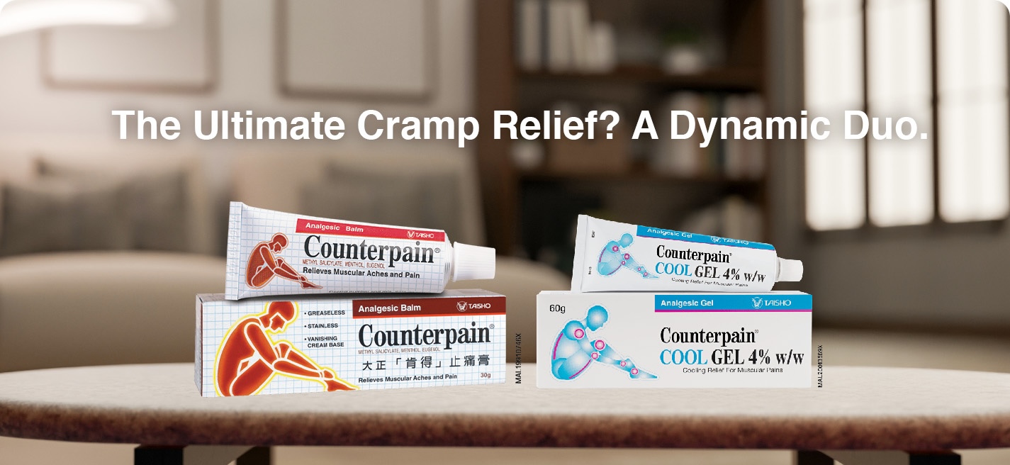 Hafiz doesn’t take chances anymore. He’s got a tube of Counterpain Cream in his futsal bag, and Counterpain Cool Gel by his bedside. Cramp? What cramp? He’s been having a peaceful and pain-free experience!